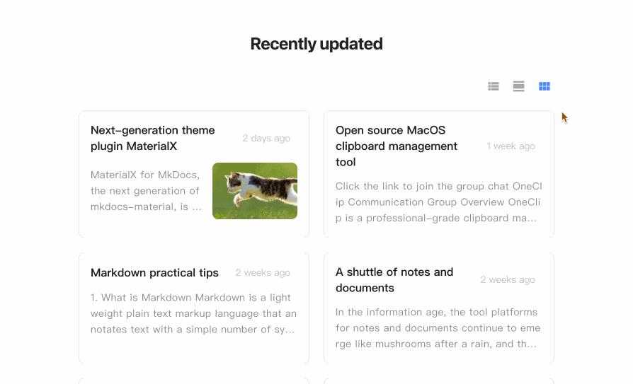 - Support list display of recently updated documents (in descending order of update date)