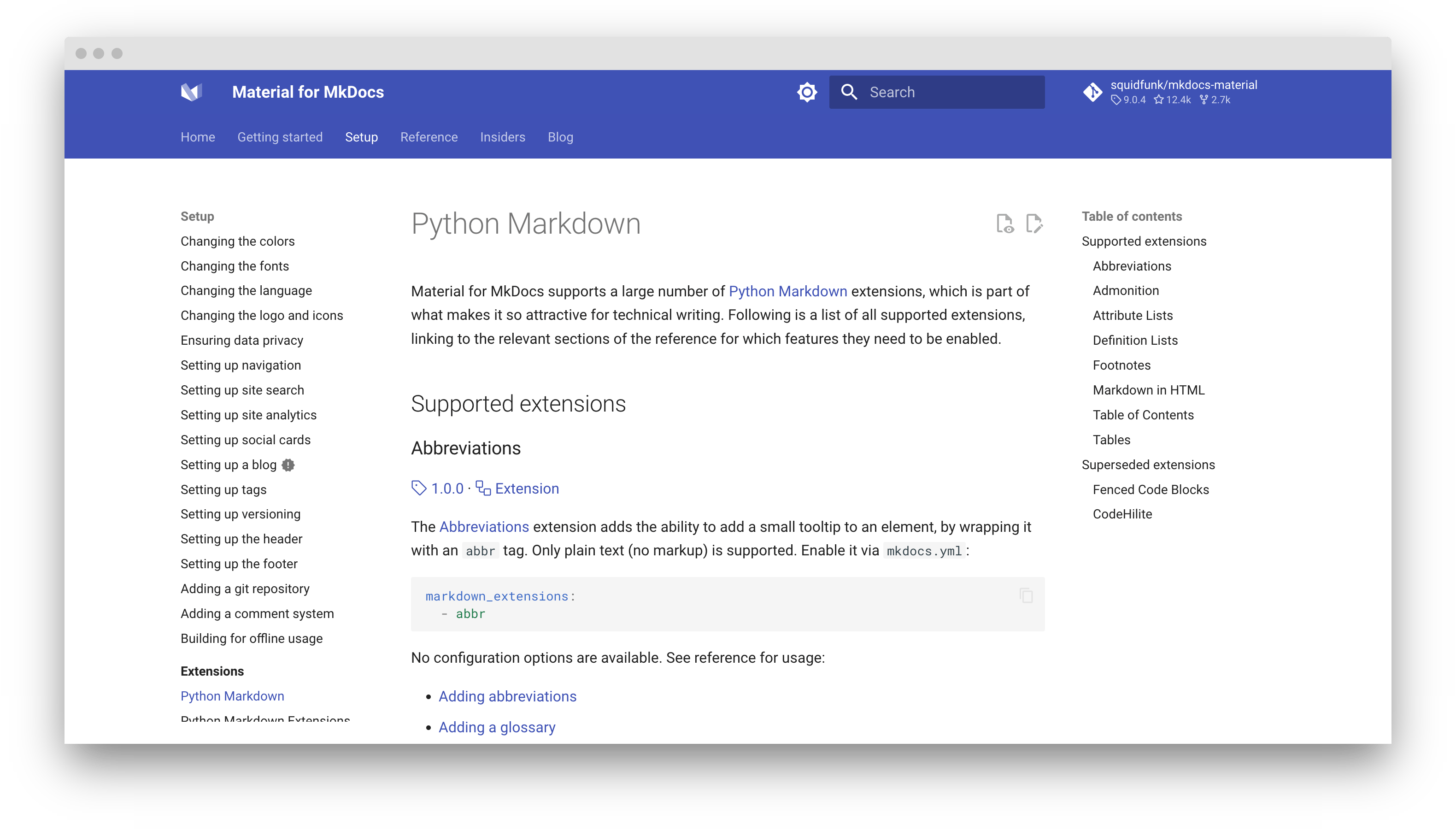 The resulting page is parsed and injected and all event handlers and components are rebound automatically, i.e., Material for MkDocs now behaves like a Single Page Application. Now, the search index survives navigation, which is especially useful for large documentation sites.
